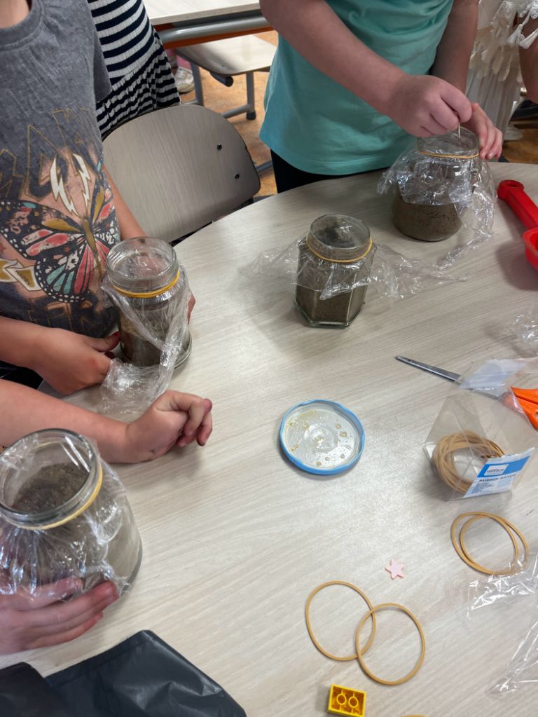 Op De Boomgaard Noordoost werkten de kinderen aan het thema Kriebelbeestjes. Voor de afsluiting van dit thema hadden de kinderen allemaal potjes meegenomen. Met de potjes hadden ze een echt mierenhotel gemaakt. Door het mierenhotelpotje in een donkere omgeving te zetten, kunnen ze zien hoe de mieren gang maken.